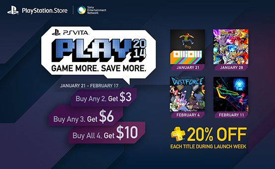 Each week for the next four weeks on PS Store, a new PS Vita game will be released as part of the PS Vita PLAY promotion. If you are a PlayStation Plus member, you will receive a 20% discount on each PS Vita PLAY game during the launch week of each respective game. As an added bonus, anyone who purchases two or more PS Vita PLAY games from January 21st through February 17th will receive a bonus SEN wallet credit.