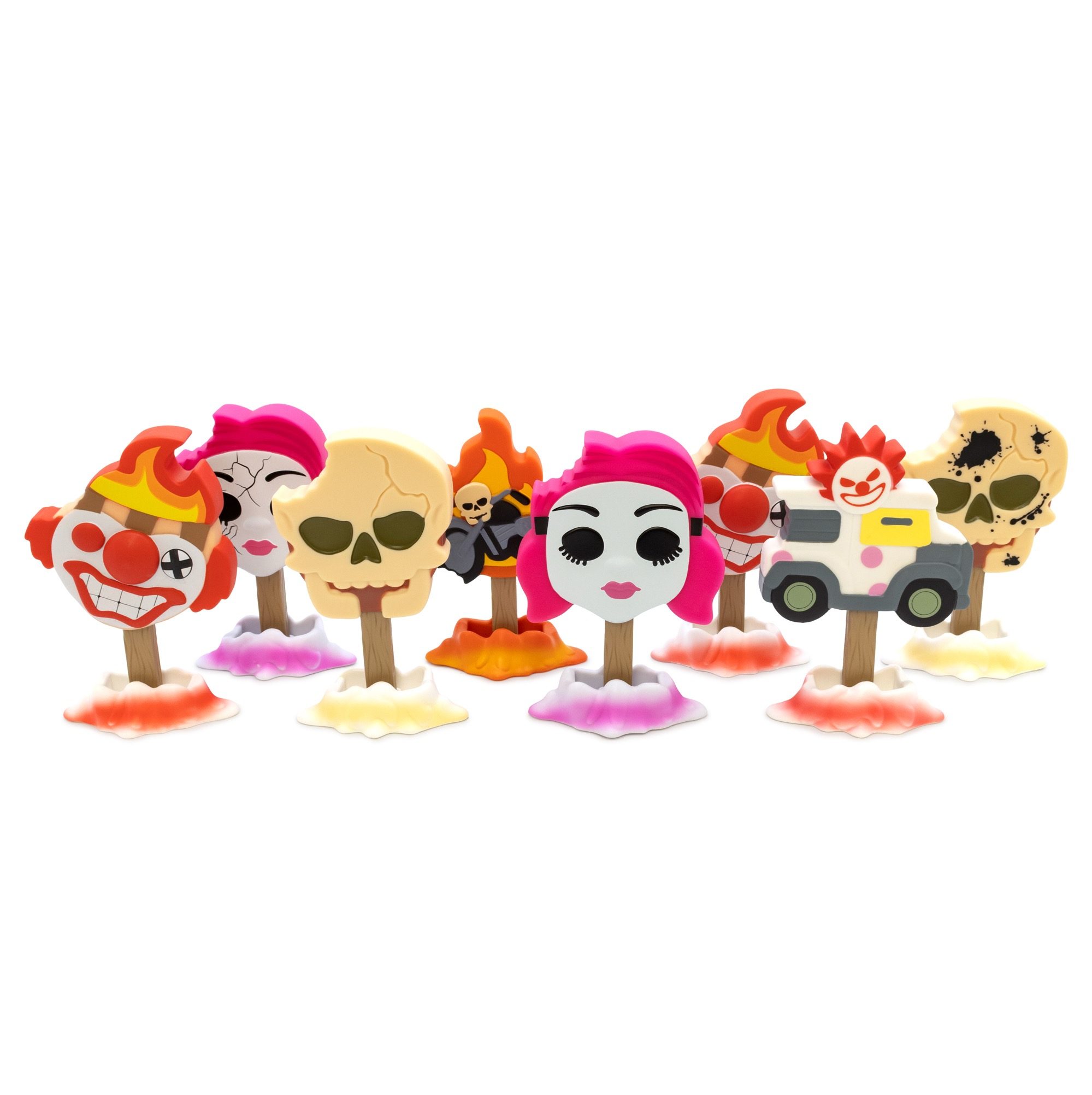 A wild assortment of Culturefly’s signature Meltz figures reimagined as over-the-top characters and vehicles from the chaotic world of Twisted Metal.